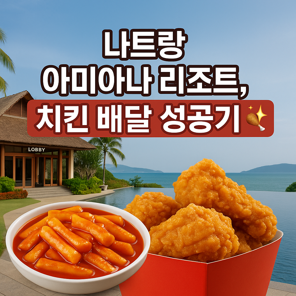 나트랑 아미아나 리조트에서는 치킨 떡볶이 냉면 배달을 해드시는분들이 가장많은곳인데요 , 빠르게 배달해드리고 배달비도 나짱치킨집중에서 가장저렴함을 자부합니다. 빠르게 맛있게 정확하게 배달해드리도록 하겠습니다 .