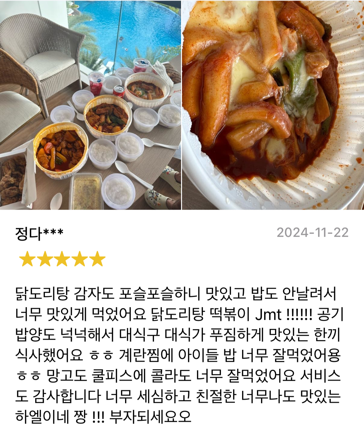 함께 주문한 한식 메뉴도 만족스러웠다. 나트랑에서 한식 배달을 먹는다는 게 처음에는 조금 어색했는데, 막상 먹어보니 여행 중간에 이런 음식이 있다는 게 꽤 큰 위안이 되더라. 하루 종일 돌아다니다가 밤에 숙소에서 편하게 먹는 치킨 한 마리는 생각보다 여행 만족도를 크게 올려준다.