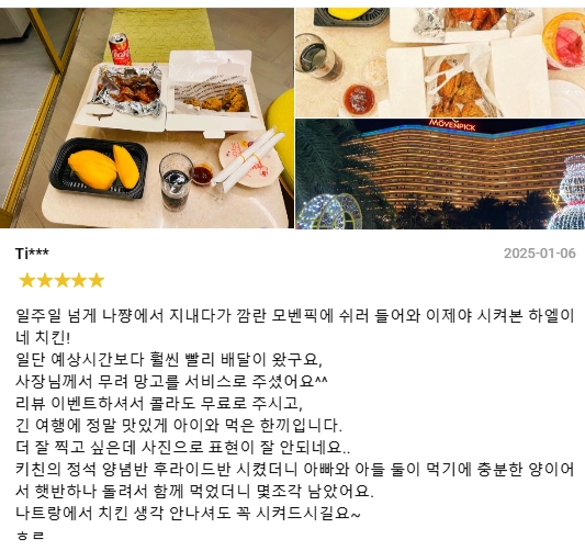 나트랑 여행을 계획하면서 아미아나 리조트에서 머무를 예정이라면, 맛있는 배달 음식을 미리 알아두는 것이 중요합니다. 리조트 내 레스토랑도 좋지만, 가성비 좋은 한식 배달을 원한다면? 본스치킨 하엘이네를 추천합니다!